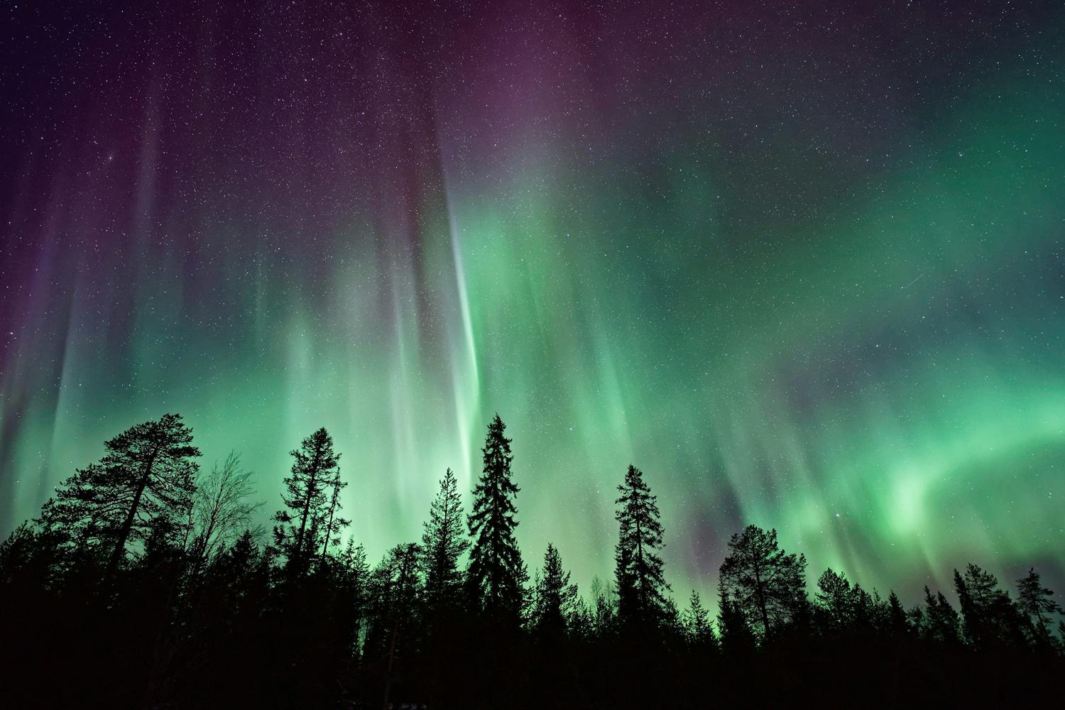 Our magnetic field helps to protect us from being hit by these high charged particles, forcing the particles to follow Earth’s magnetic field lines and collide with gasses in the upper atmosphere. This collision causes light to be released in a very similar way to how a neon tube works (which we’ll look at later). Large solar winds produce the auroras (northern and southern lights). It’s more common to see the auroras at the north and south pole because that’s where Earth’s magnetic field lines converge towards Earth, sending the particles on a collision course with the gasses in the upper atmosphere.